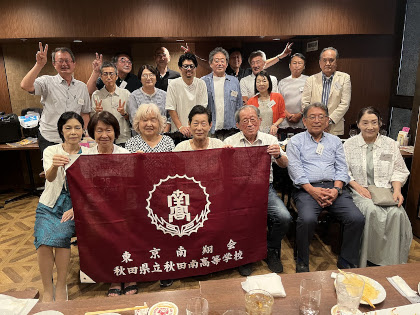 首都圏在住の秋田南高校卒業生が集まり幅広に情報交換をする「夏の懇親ビアパーティ」を令和7年8月23日に卒業生21名の参加を得て開催いたしました。今回は趣向を凝らし、現役南高生に対しての支援活動の協力依頼、野球部OBのマスターズ甲子園出場報告、溜池山王でアガッテタンシェを経営している柳瀬さんの初参加などを盛り込んでとても楽しい会となりました。今後もこのホームページを通じて各種会合、懇親会の案内をしていきますのでご参加下さい。初参加大歓迎でお待ちしております。